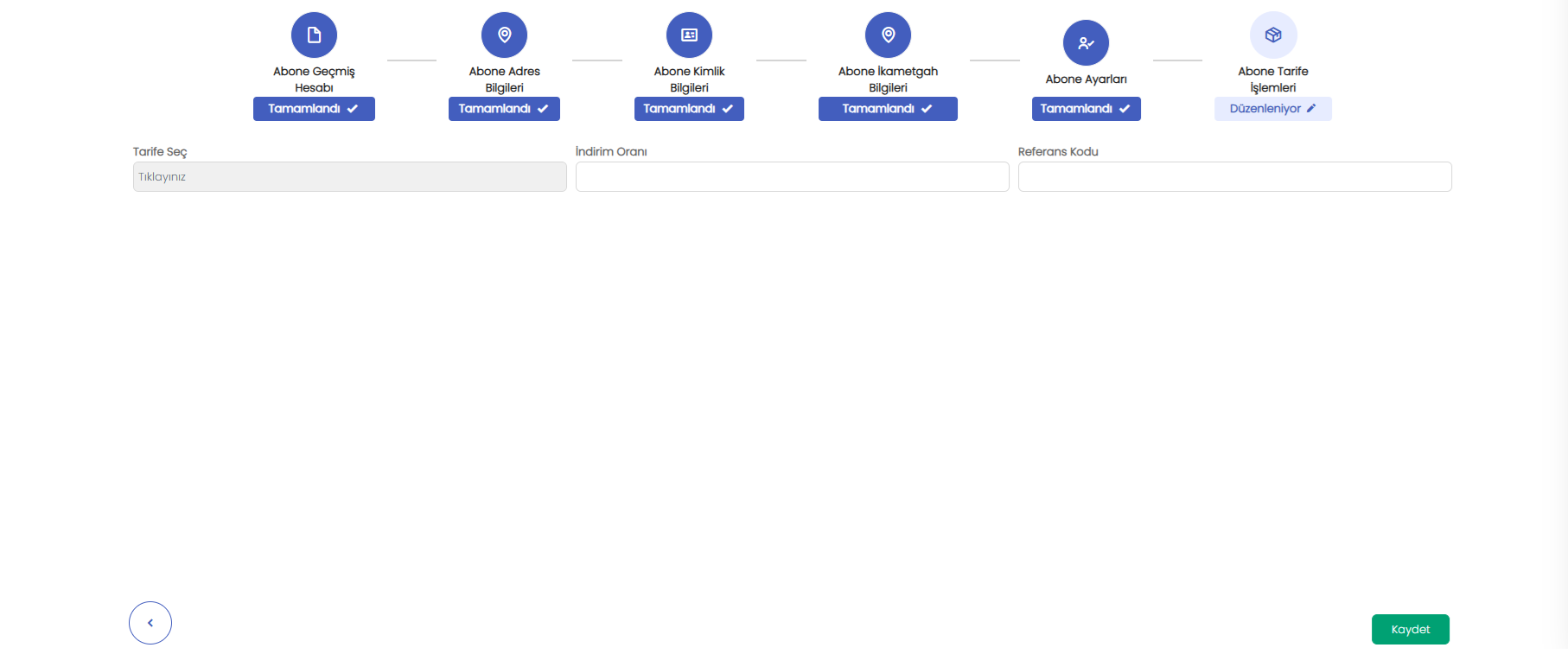 Son ekranda sağ altta “Kaydet” butonu ile abonelik oluşturma işlemi tamamlanır.