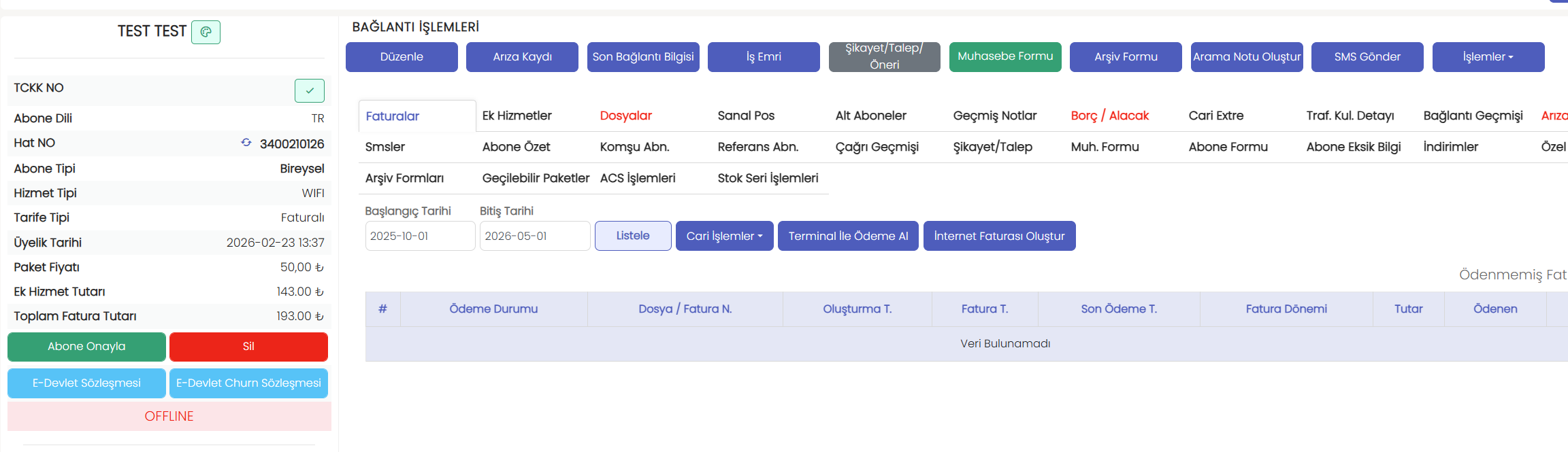 Abone oluşturma işlemini tamamladıktan sonra, abone “onay bekleyenler” durumundayken abone detay sayfasında yer alan mavi E-Devlet Sözleşmesi butonu üzerinden sözleşmeyi kolayca oluşturabilirsiniz.