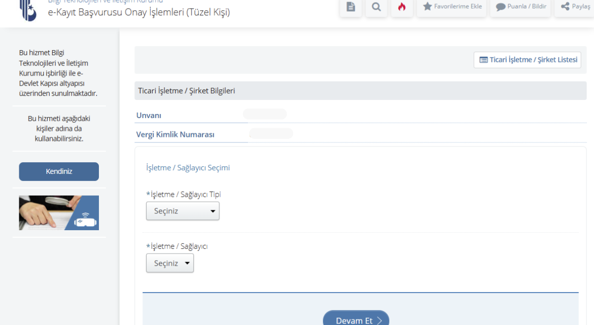 Abone, E-Devlet hesabına giriş yaptıktan sonra arama alanına “e-Kayıt” yazarak çıkan Bilgi Teknolojileri başlığına tıklamalıdır. Açılan ekranda ilk olarak “İşletme Sağlayıcı Tipi” alanı “Haberleşme” olarak seçilmeli, ardından “İşletme Sağlayıcı” alanından firmanızın adı tercih edilmelidir.