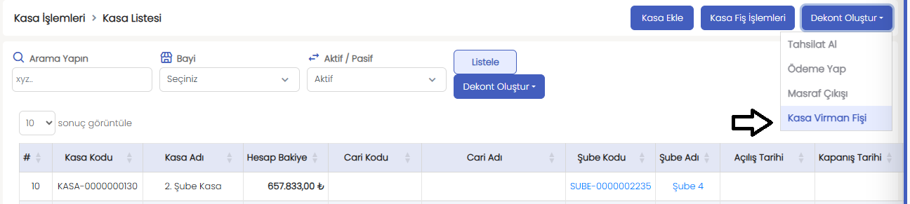 Kasa işlemlerinizi hızlı ve düzenli bir şekilde gerçekleştirmek için Kasa Virman Fişi oluşturabilirsiniz. Bu işlem sayesinde kasalar arası para transferlerini sistem üzerinden kolayca kayıt altına alabilirsiniz.